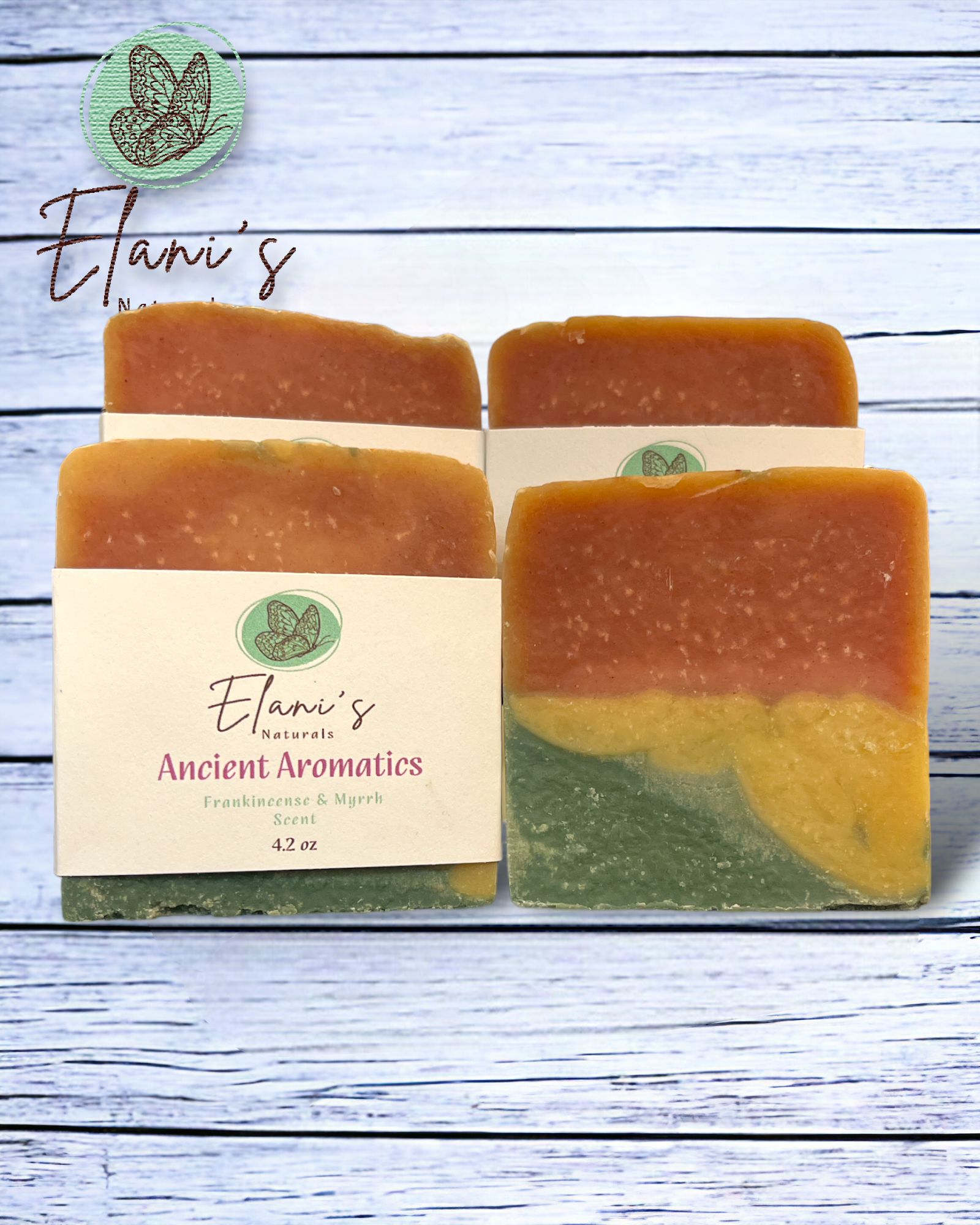 Embrace the essence of time-honored beauty with our 'Ancient Aromatics' soap bar, a luxurious blend of natural oils and aromatic essences that have been cherished since antiquity. Infused with the deep, resinous notes of Myrrh and Frankincense essential oils, this bar is a homage to the sacred rituals that celebrate the human spirit.