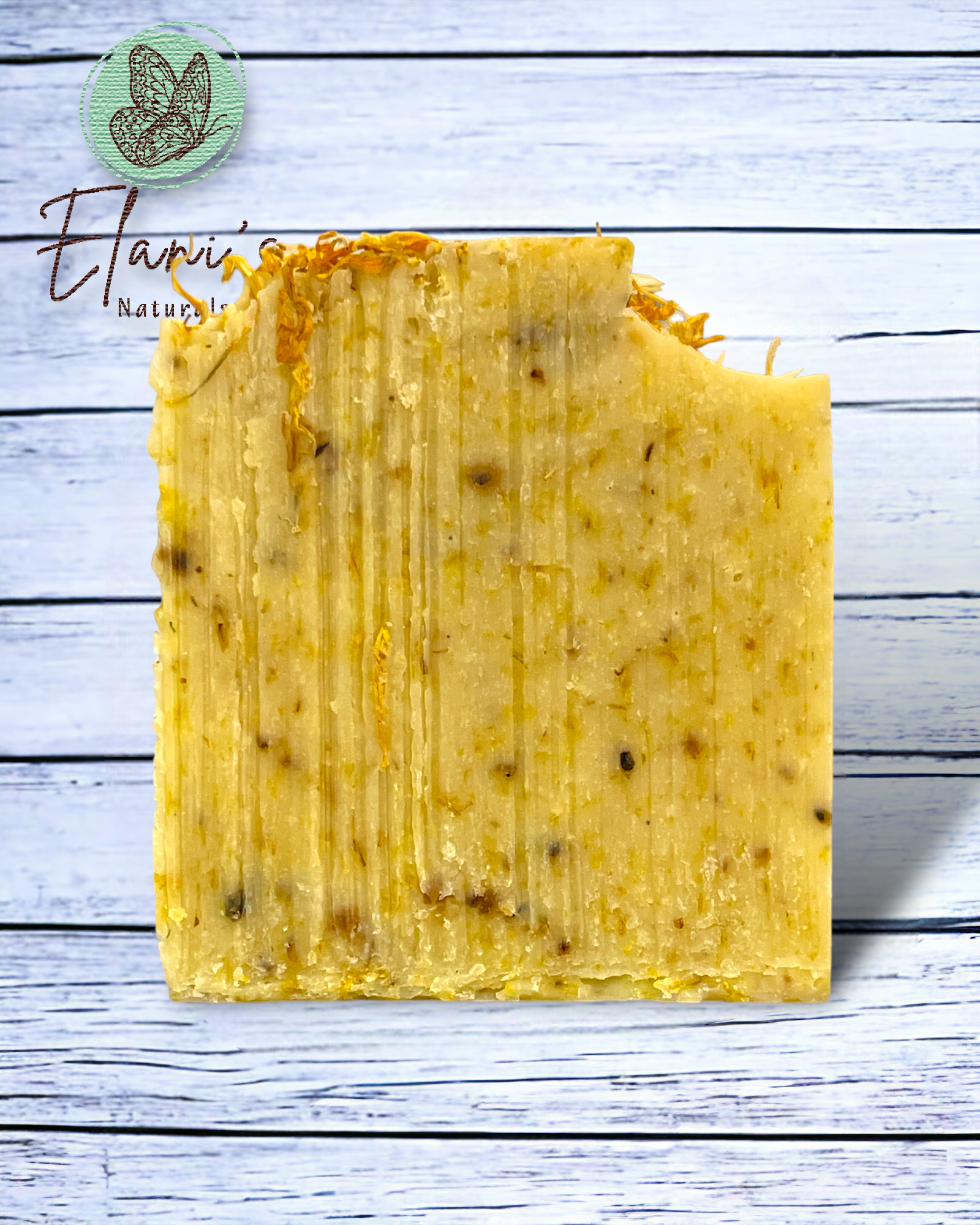 Adorned with dried calendula petals on top, "Calendula Sunrise" is not just a soap; it's an ode to nature's beauty, offering a moment of serenity in the midst of daily life.