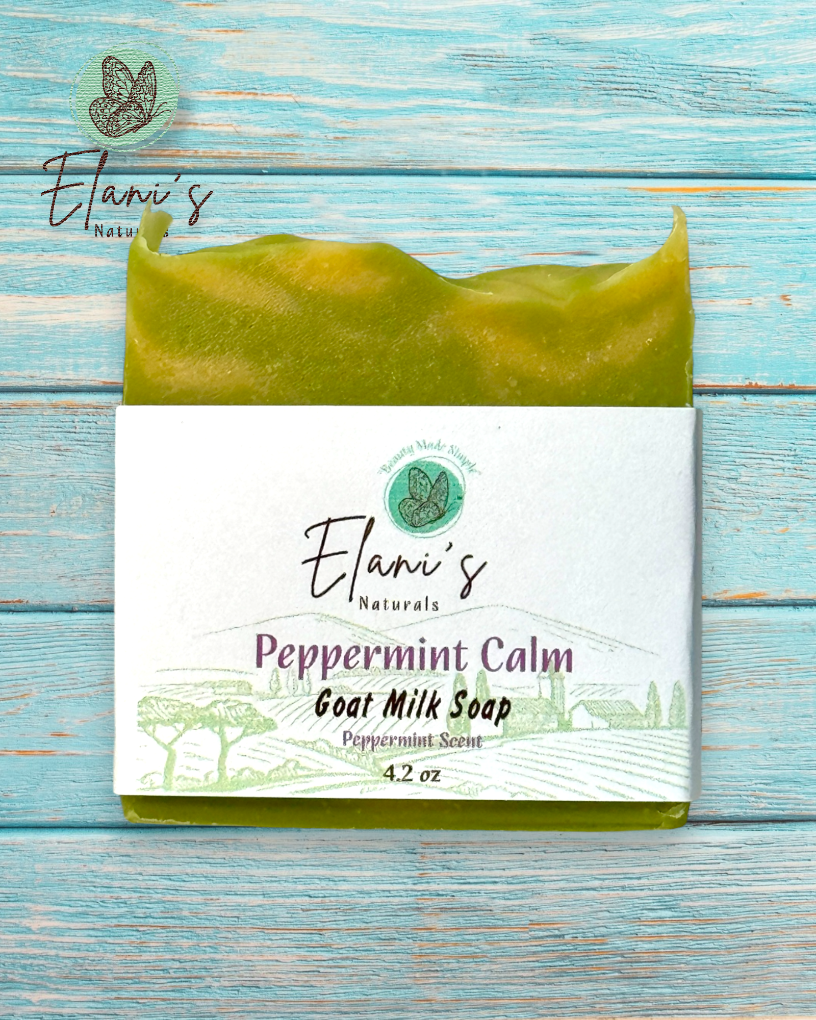 Peppermint Calm is a revitalizing soap bar that combines the nourishing power of natural oils with the soothing qualities of goat milk. This bar is crafted with a moisturizing blend of castor oil, olive oil, and coconut oil, which helps to cleanse the skin while maintaining its softness and hydration. The goat milk adds a luxurious, creamy texture, leaving the skin feeling smooth and refreshed after each use.